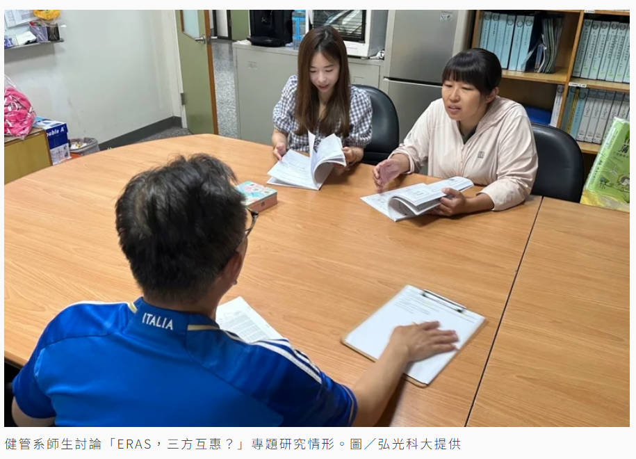 這項研究由健管系助理教授李怡慶帶領4名研究生、2名大三學生一起執行。李怡慶指出,ERAS源自1990年代丹麥,強調透過多模式止痛、早期下床活動與營養支持等方式,幫助病人更快康復,減少併發症與住院天數。近年來被廣泛應用於心臟、骨科、婦科及急診手術等領域,被視為提升醫療品質與病人安全的重要策略,過去研究多數為病人層面的恢復,對醫護團隊推行的組織氛圍、合作模式與安全行為,缺乏深入探討。