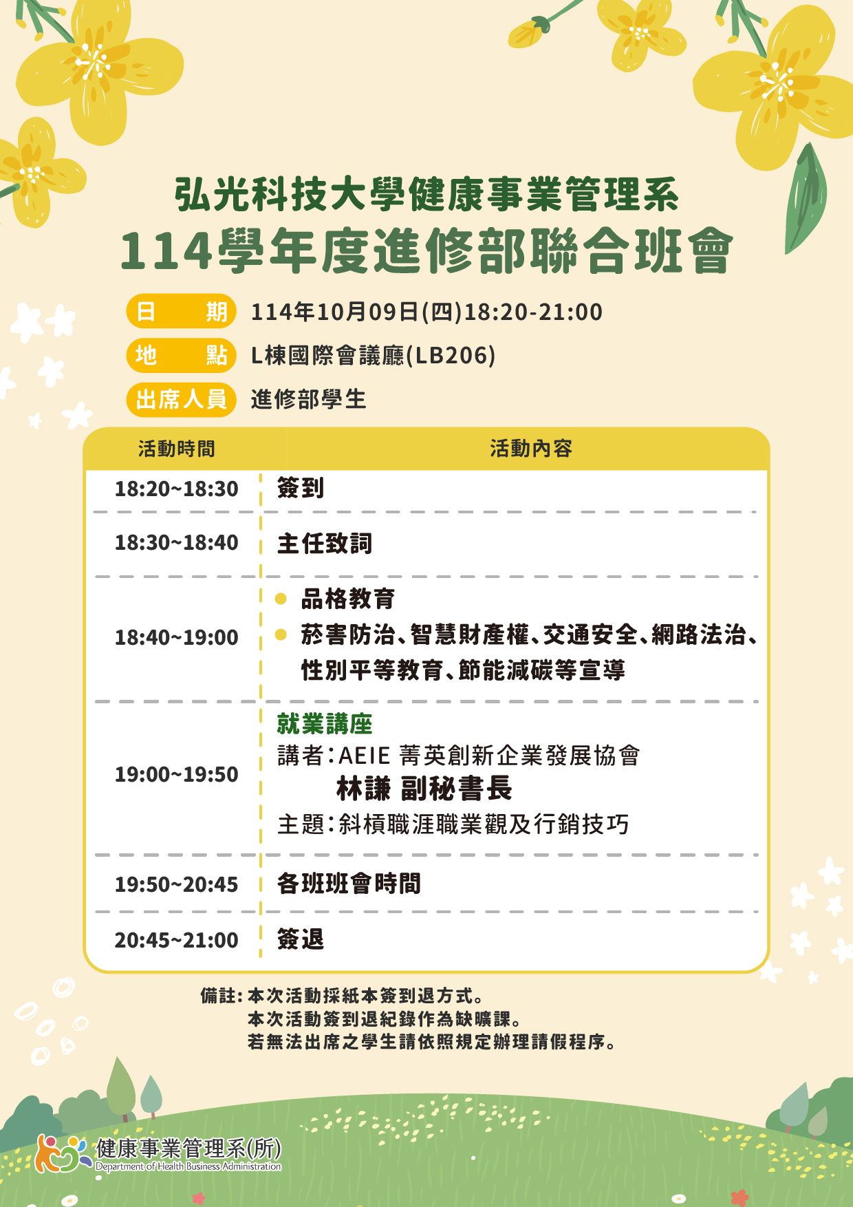 弘光科技大學健康事業管理系(所) 114學年進修部聯合班會
