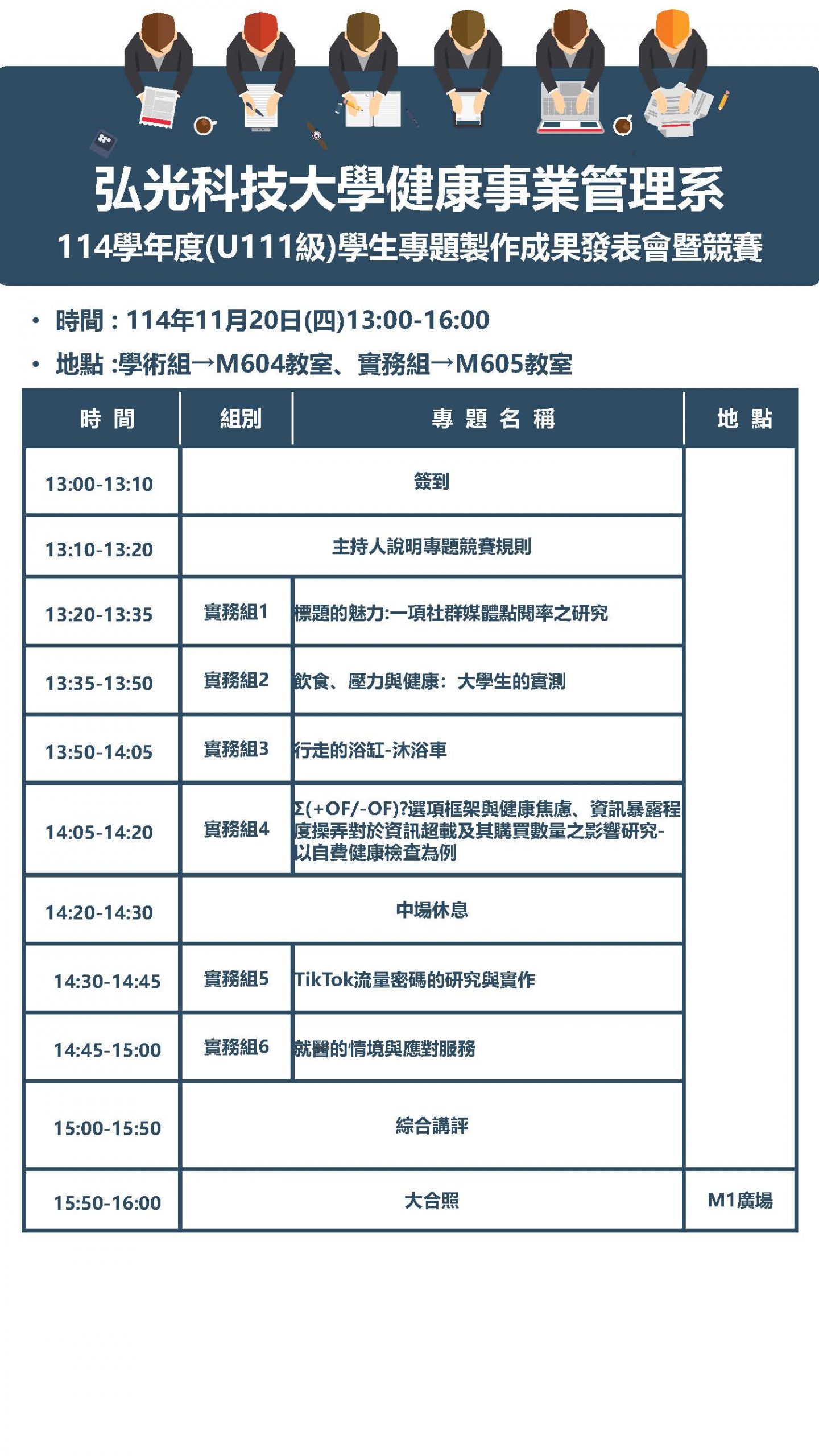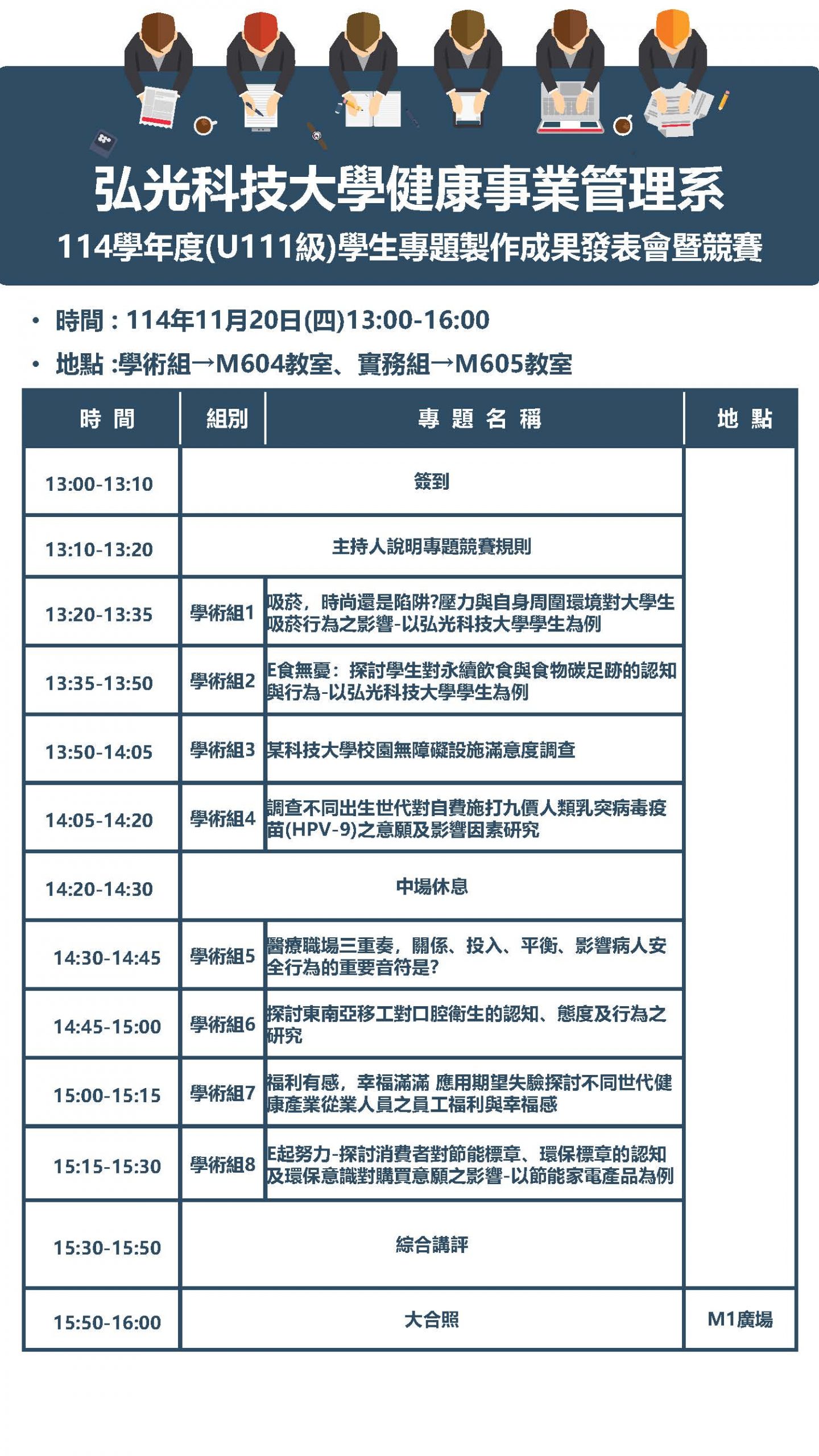 114學年度(U111級)學生專題製作成果發表會暨競賽-發表時間